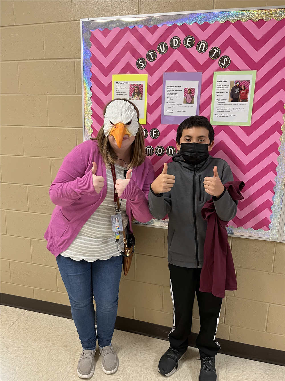 Awarded monthly to a student in each grade level and to one staff member; each winner will receive a t-shirt, a certificate, and highlighted on a bulletin board. All nominated students receive a note recognizing their nomination. Students and staff are nominated by the Fruzen staff.